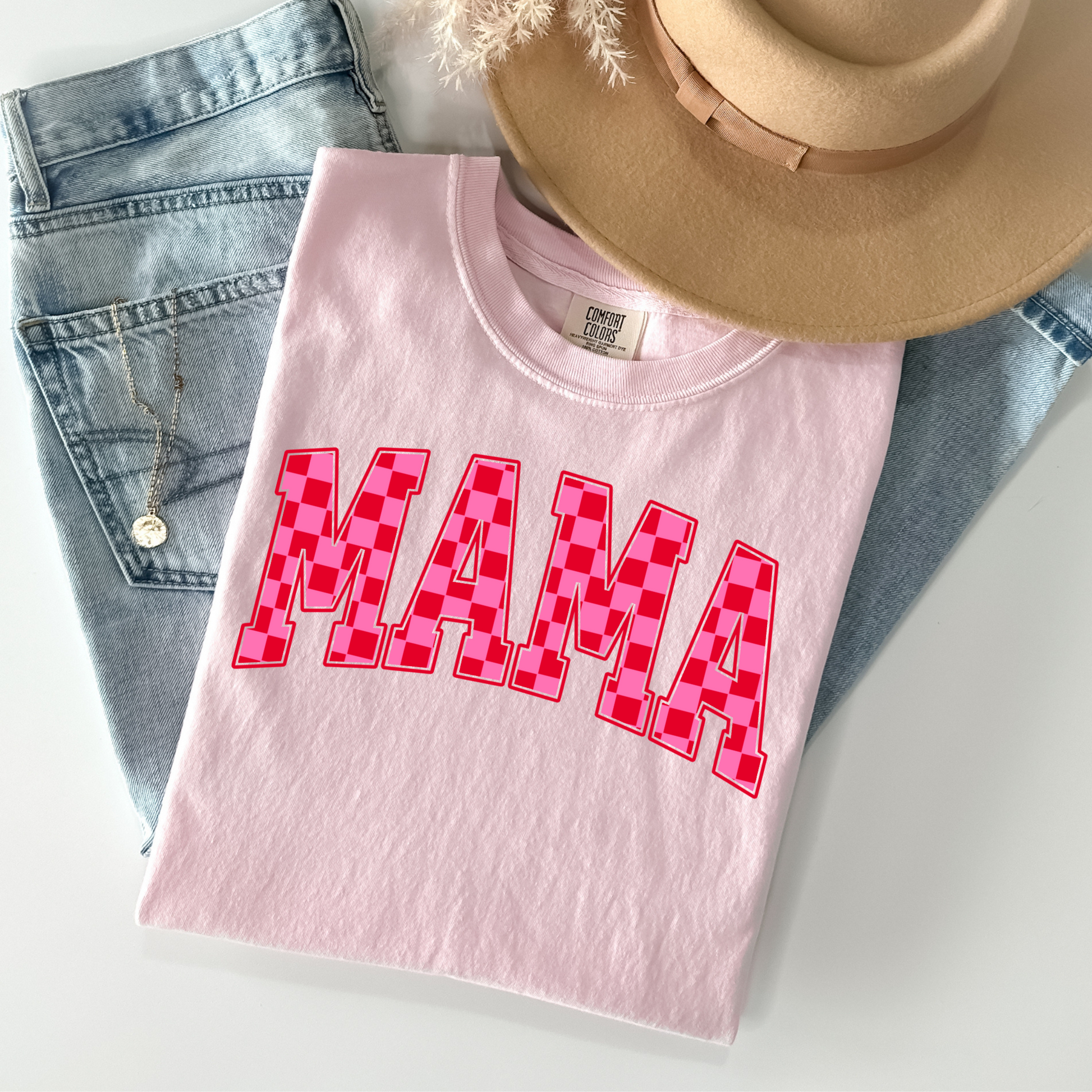 Pink Checkered Mama Tee